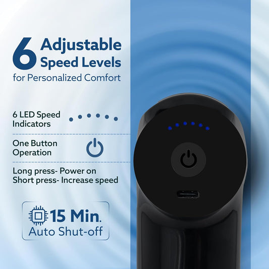79% OFFOPEN BOX An open-box product is a brand new, unused item that has been opened, but remains in excellent condition with full functionality & warranty.Lifelong LLGM109 Percussion Massage Gun for Pain Relief, Deep Tissue, 6 Speeds & 7 Massage Heads, Cordless, Quiet Operation for Neck, Shoulders, Back, Arms, Legs & Feet (Black)