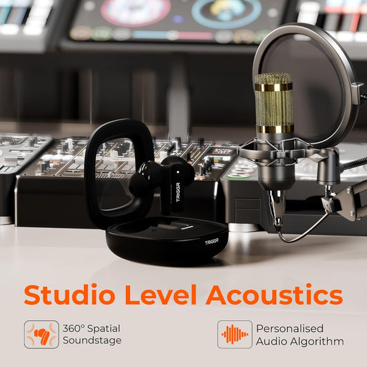 OPEN BOX An open-box product is a brand new, unused item that has been opened, but remains in excellent condition with full functionality & warranty.TRIGGR Ultrabuds N5 Truly Wireless Bluetooth in Ear Earbuds with Latest BT v6.0, 40Hr Playtime, 13mm Dynamic Drivers, Rich Bass Earbuds TWS (Smoky Sun)