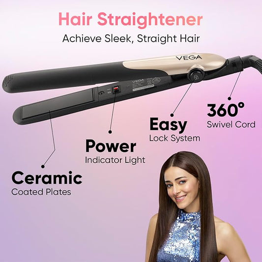 23% OFFOPEN BOX An open-box product is a brand new, unused item that has been opened, but remains in excellent condition with full functionality & warranty.Vega Salon Smooth Hair Straightener for Women with Ceramic Coated Plates, Quick Heatup & Travel Friendly, Travel Lock, Suitable for All Hair Types, 1 Year Warranty, Green (VHSH-42)