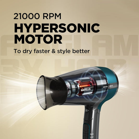 50% OFFOPEN BOX An open-box product is a brand new, unused item that has been opened, but remains in excellent condition with full functionality & warranty.Havells Styling Hair Dryer | Hypersonic Motor | 3 Detachable Attachment| Diffuser, Quill-Style Comb, Aerofocus Nozzle|3 Temperature/2 Speed Settings| Cool Shot| 1200 W |2 years guarantee|HD4161