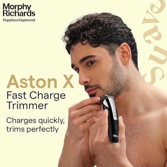 OPEN BOX An open-box product is a brand new, unused item that has been opened, but remains in excellent condition with full functionality & warranty.Morphy Richards AstonX BT2220 cordless beard trimmer for men|2-hr Fast USB Charging| 11 Settings-Single Comb|2-Yr Warranty|Travel friendly body trimmer|Removable & Washable Blades| Black|Gift for Him