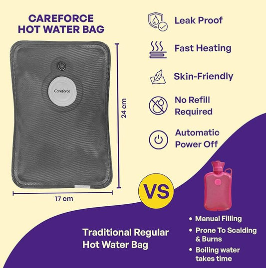 OPEN BOX An open-box product is a brand new, unused item that has been opened, but remains in excellent condition with full functionality & warranty.Careforce Electric Hot Water Bag Electric Hot Bag Heating Bag Hot Gel Bag Electric Warm Water Bag Heat Bag Hot Pack - Grey