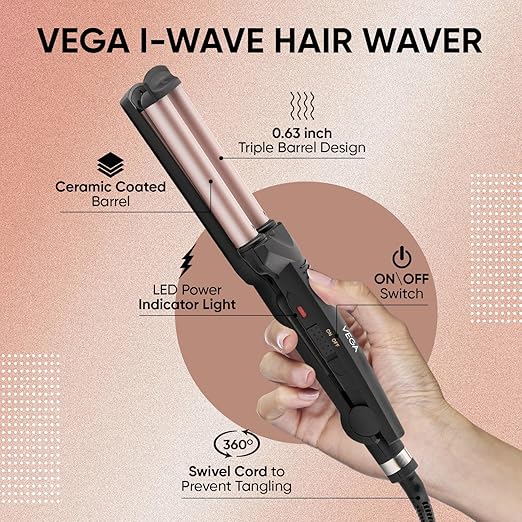 OPEN BOX An open-box product is a brand new, unused item that has been opened, but remains in excellent condition with full functionality & warranty.Vega I-Wave Hair Waver for Women with Ceramic Coated Barrel, Soft & Deep Wave Hair Curls, Black, (VHWR-01)