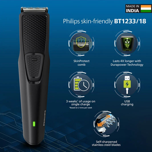 Open Box An open-box product is a brand new, unused item that has been opened, but remains in excellent condition with full functionality & warranty.PHILIPS BT1233/18 Trimmer 30 min Runtime 4 Length Settings