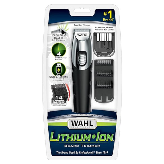 23% OFFOPEN BOX An open-box product is a brand new, unused item that has been opened, but remains in excellent condition with full functionality & warranty.WAHL Lithium Ion Beard Cordless USB Rechargeable Trimmer for Men with Self-Sharpening Precision Blades, 14 Cutting Lengths, 2 Years Warranty, Highest 240 Mins Runtime on Single Charge; 3024199