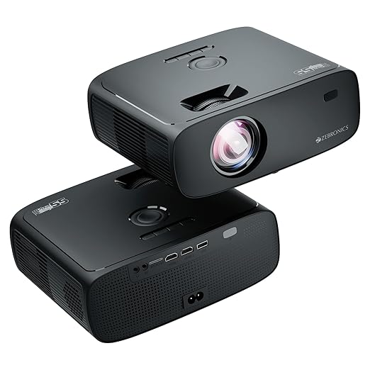Open Box An open-box product is a brand new, unused item that has been opened, but remains in excellent condition with full functionality & warranty.ZEBRONICS PIXAPLAY 65, Android Projector, 8500 Lumens, 4K Support, 200 Inch Screen Size, Electronic Focus, Built-in Speaker, Bluetooth, HDMI, USB, WiFi, AUX, 1080p Native, Miracast
