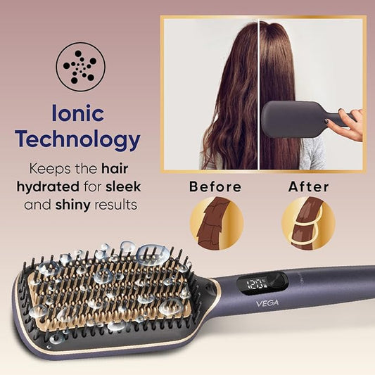OPEN BOX An open-box product is a brand new, unused item that has been opened, but remains in excellent condition with full functionality & warranty.Vega LitStyle L1 Hair Straightener Brush for Women with Triple Care & ThermoProtect Technology(Keratin,Argan Oil & Ionic),Frizz-Free Hair in Few Mins, Straightening Effect Upto 12 Hours(VHSB-06)