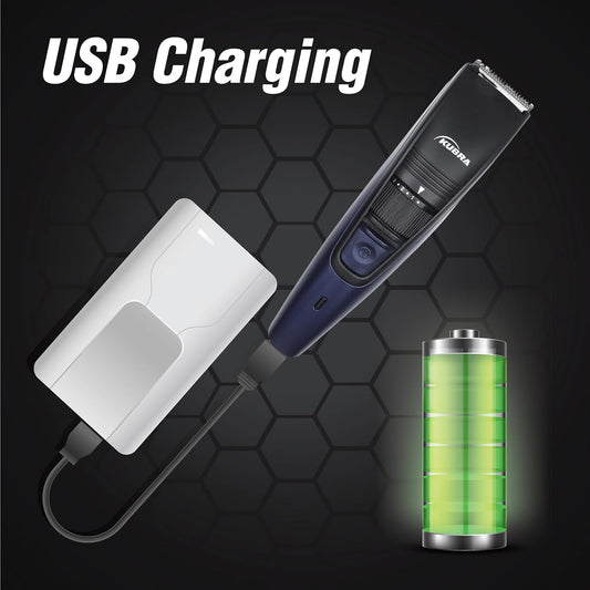 OPEN BOX An open-box product is a brand new, unused item that has been opened, but remains in excellent condition with full functionality & warranty.Kubra Kb-1016 Hair Trimmer For Men/Beard Trimmer For Men, Blue | Usb Charging Trimmer Men | 90-Minute Runtime With Fast Charging | Adjustable 20 Length Setting | Led Charging Indicator - Electric