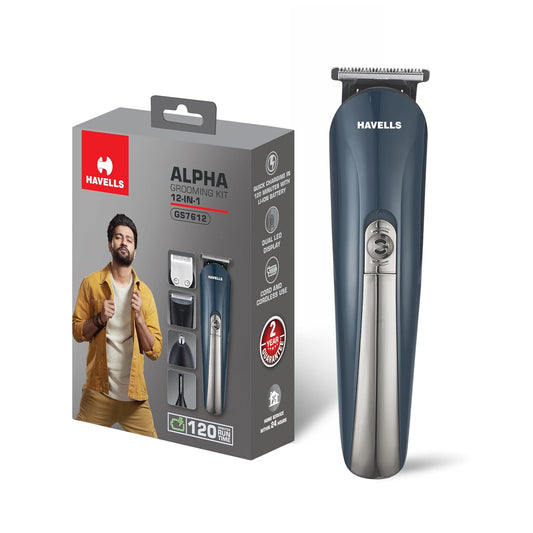 37% OFFOPEN BOX An open-box product is a brand new, unused item that has been opened, but remains in excellent condition with full functionality & warranty.HAVELLS GROOMING KIT 12 IN 1 GS7612 Grooming Kit 120 min Runtime 8 Length Settings (Black, Grey)