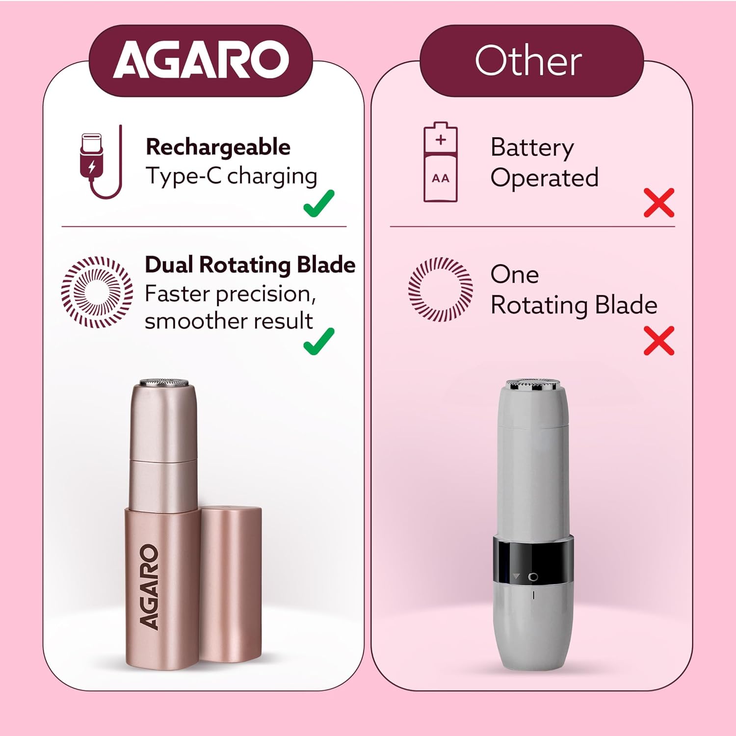 AGARO Facial Hair Remover Fhr170 For Women,Cordless&Painless Electric Shaver With Hypoallergenic Blade,Rechargeable,Multipurpose& Safe Use For Upper Lip,Chin,Cheeks&Forehead,Ideal For On-The-Go