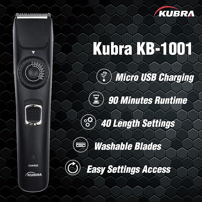 - SS EFFICIENCY: High-performance stainless steel blades of Kubra hair trimmer for men / beard trimmer for men ensure cleaner cutting/trimming of the hair, leaving little/no room for doubts.