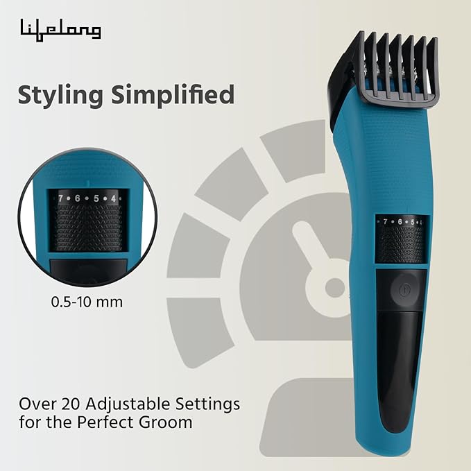 Lifelong Battery Powered Trimmer | 1 Year Warranty | Trimmer for Men, 60 Min Runtime, 20 Length Settings, Hair & Beard Trimmer, Stainless Steel Blades (LLPCM107, Blue)